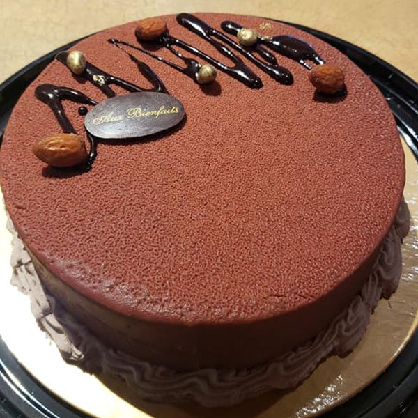 Mousse au chocolat noir, ganache au chocolat mi-amer, riche caramel fleur de sel maison sur croustillant amandes et noisettes, recouvert d’un velours au cacao. Le gâteau idéal pour terminer un repas de roi.